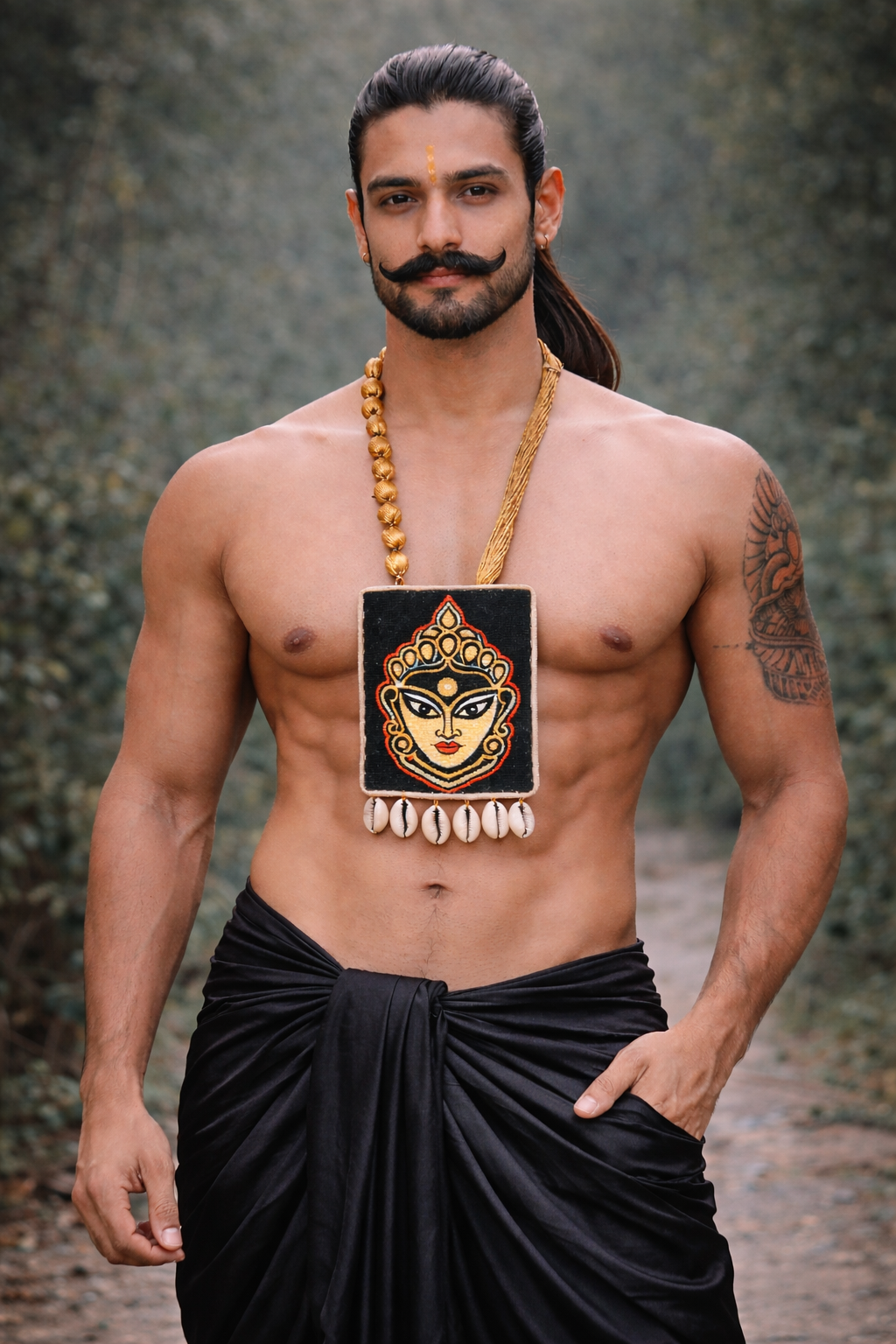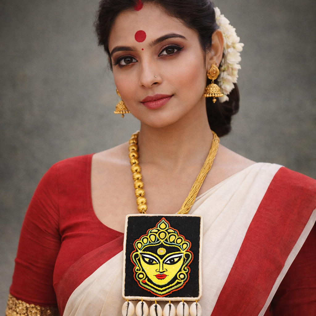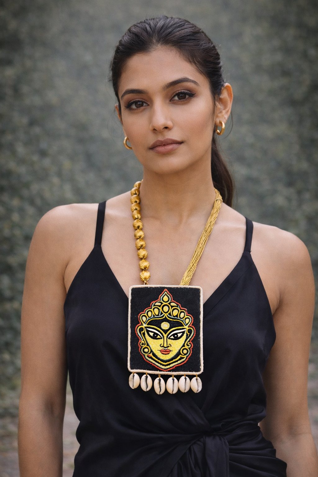 This hand-painted canvas necklace is a wearable piece of art. The square pendant features a beautifully detailed goddess face, carefully painted by hand on canvas. Each piece is unique — no two necklaces are exactly the same.