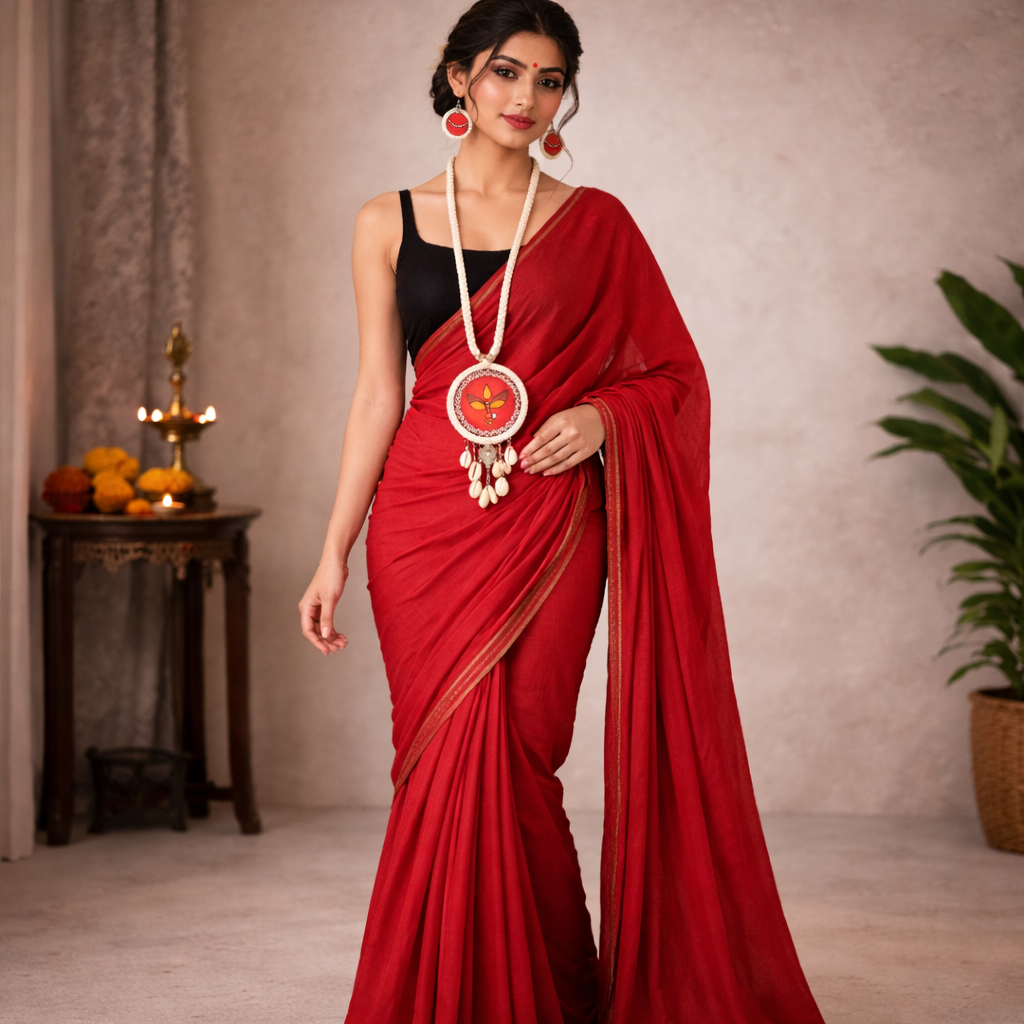 Iska artistic finish ise normal metal jewellery se alag aur premium feel deta hai. Long necklace design breast ke niche tak aata hai jo saree, suit aur festive outfits ke saath elegant statement look create karta hai.